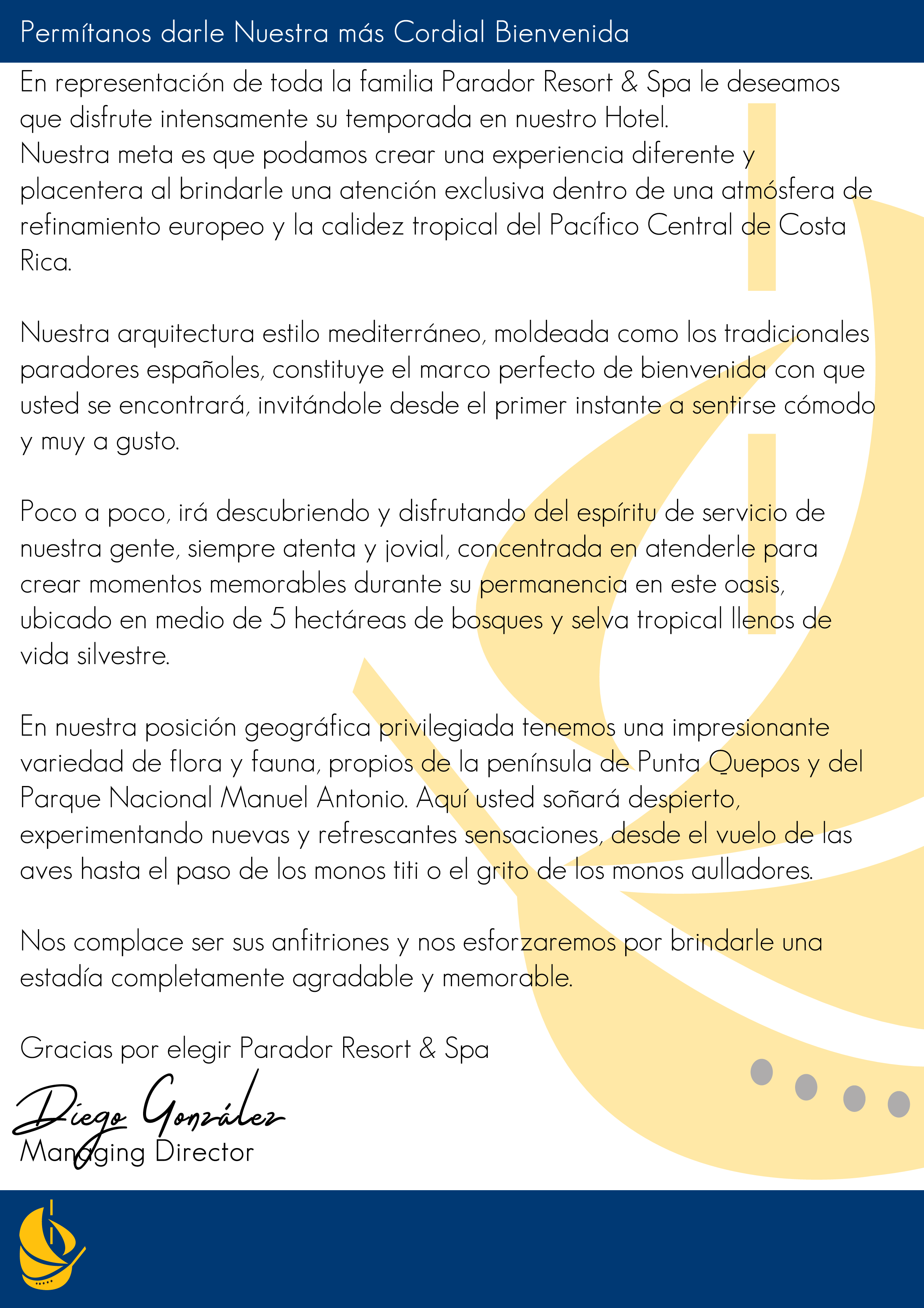 Parador Resort & Spa, one of the most important ecological hotels (⭐⭐⭐⭐⭐) in Costa Rica. Stretching through more than 12 hectares of lush rainforest teeming with wildlife. Part of our services are: